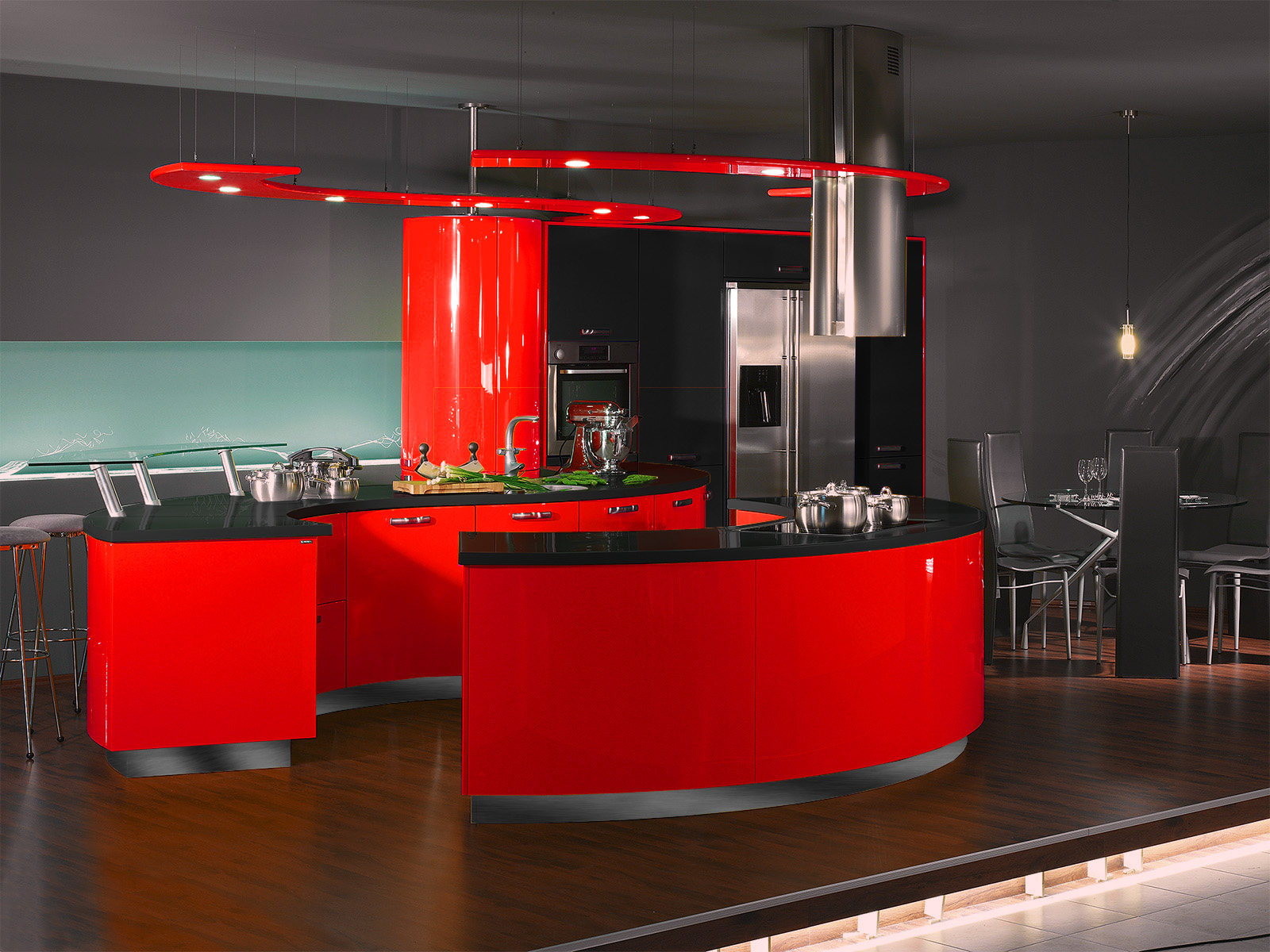 Our iconic red wave-shaped design kitchen by KicheConcept became internationally famous after being nicknamed the “Ferrari Kitchen” by the international design press — due to its sporty curves, high-gloss red finish and automotive-inspired design language.